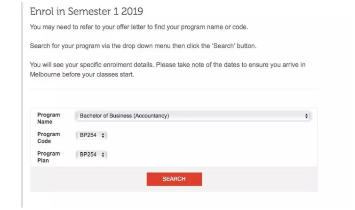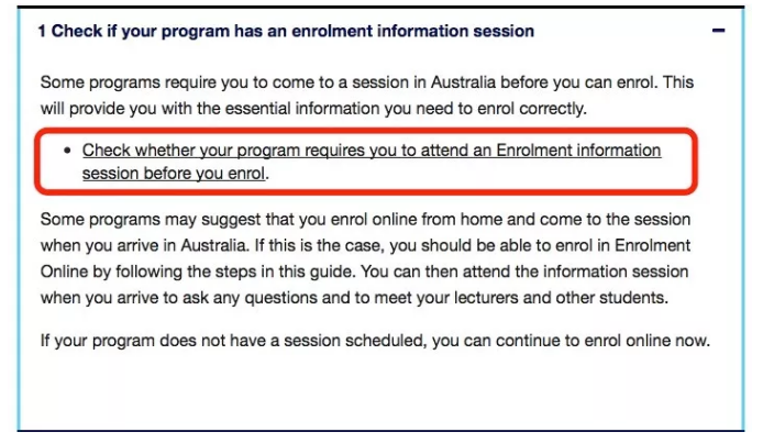 查看本专业的enrolment details,每个专业的开课时间、校区等都可能不同。