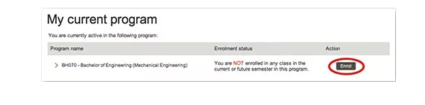 在登录后,在My current Program 部分点击“Enrol”按钮。